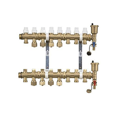 分水器是地暖系統(tǒng)中,用于連接各路加熱管供、回水的配、集水裝置。在地暖系統(tǒng)中主要負(fù)責(zé)地暖環(huán)路中水流量的開(kāi)啟和關(guān)閉,并將水均衡分配到環(huán)路中,經(jīng)過(guò)熱交換后返回到集水回主杠,再由回水口流入的供熱系統(tǒng)中。